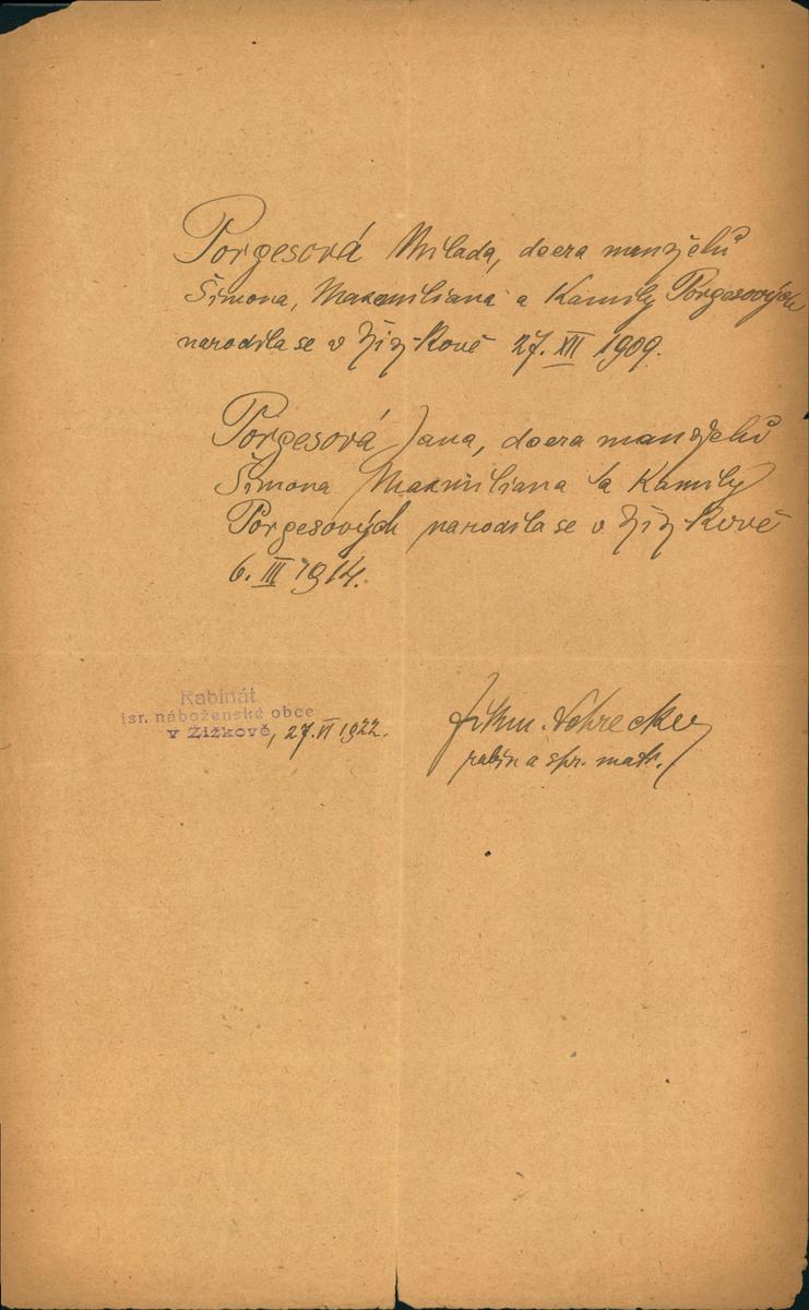 Nationalarchiv Prag > Polizei-Direktion Prag > 1941-1950 > P > Porges Max