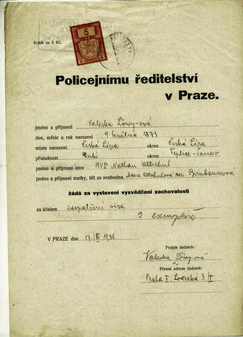 Nationalarchiv Prag > Polizei-Direktion Prag > 1931-1940 > L > Löwyová Valeska