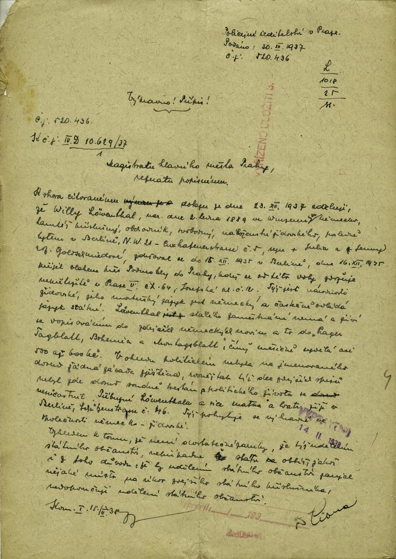 Nationalarchiv Prag > Polizei-Direktion Prag > 1931-1940 > L > Löwenthal Willy