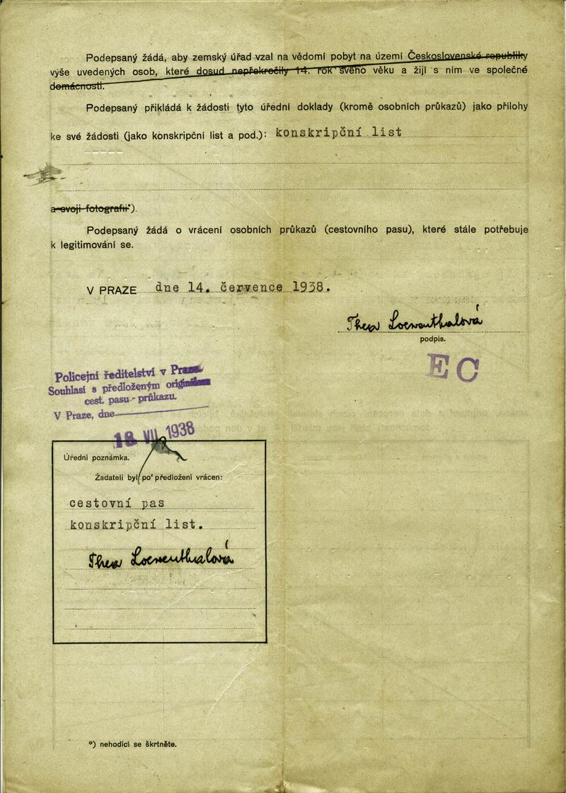 Nationalarchiv Prag > Polizei-Direktion Prag > 1931-1940 > L > Löwenthalová Thea