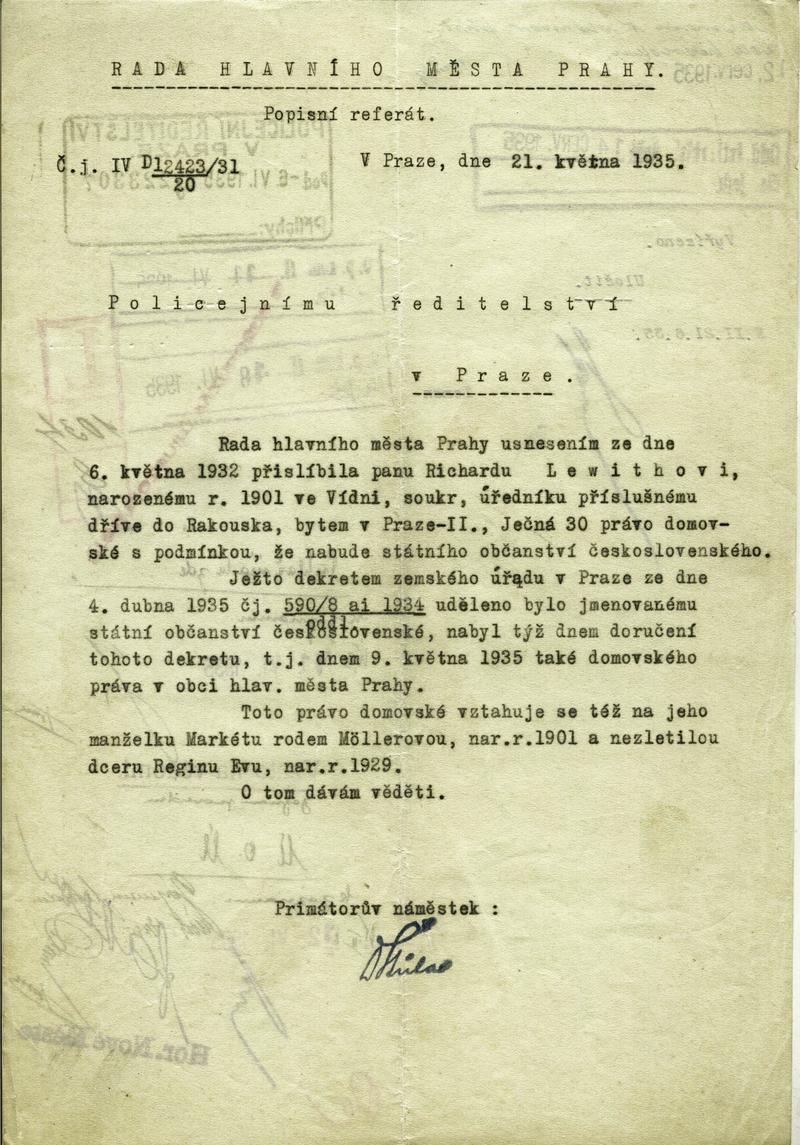 Nationalarchiv Prag > Polizei-Direktion Prag > 1931-1940 > L > Lewith Richard