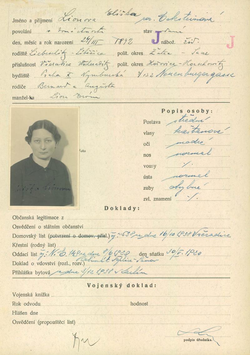 Nationalarchiv Prag > Polizei-Direktion Prag > 1931-1940 > L > Lionová Elsa