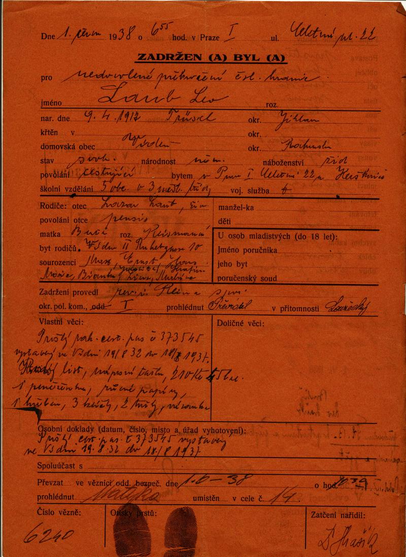 Nationalarchiv Prag > Polizei-Direktion Prag > 1931-1940 > L > Laub Leo