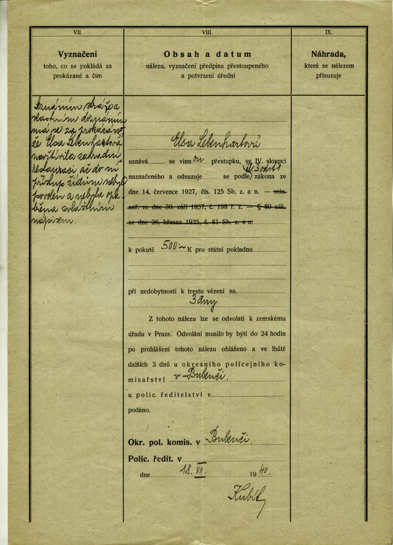 Nationalarchiv Prag > Polizei-Direktion Prag > 1931-1940 > L > Lebenhartová Elsa