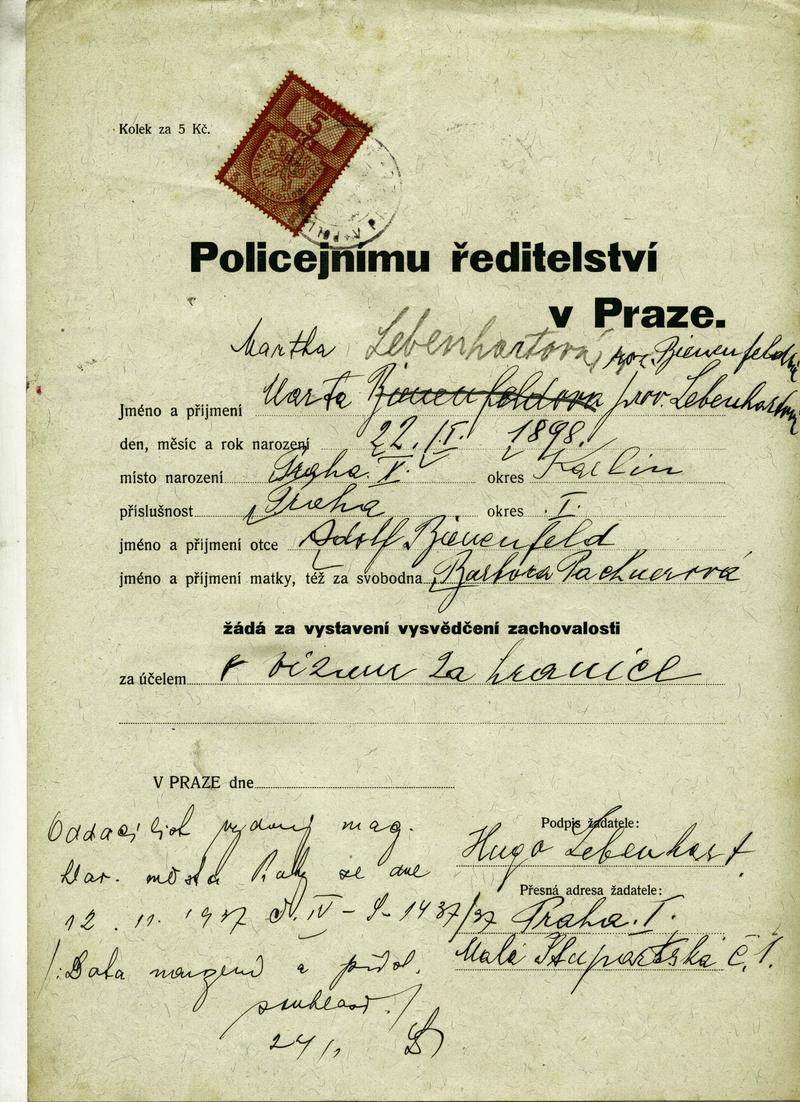 Nationalarchiv Prag > Polizei-Direktion Prag > 1931-1940 > L > Lebenhartová Marta
