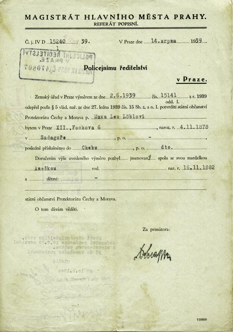 Nationalarchiv Prag > Polizei-Direktion Prag > 1931-1940 > L > Löbl Max