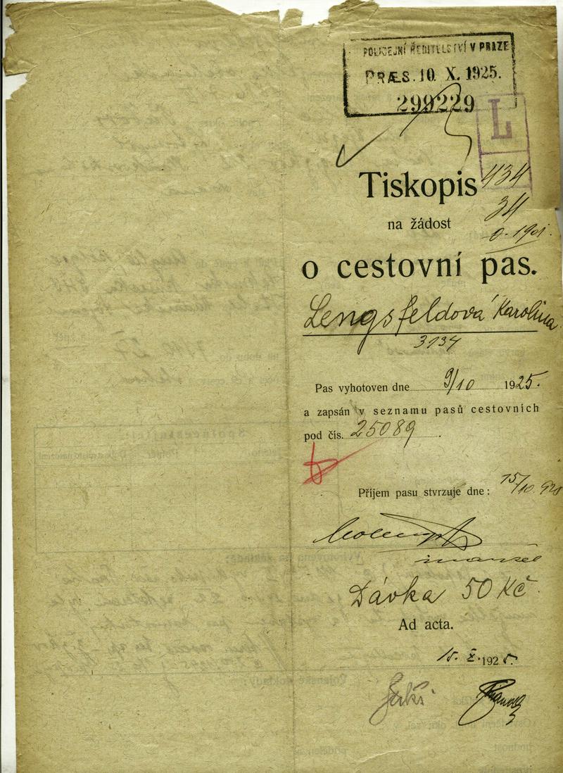 Nationalarchiv Prag > Polizei-Direktion Prag > 1931-1940 > L > Lengsfeldová Karolina