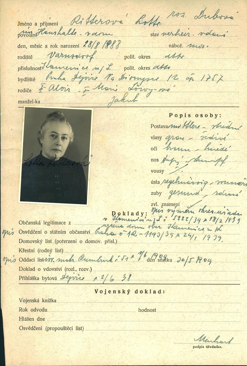 Nationalarchiv Prag > Polizei-Direktion Prag > 1931-1940 > R > Ritterová Lota