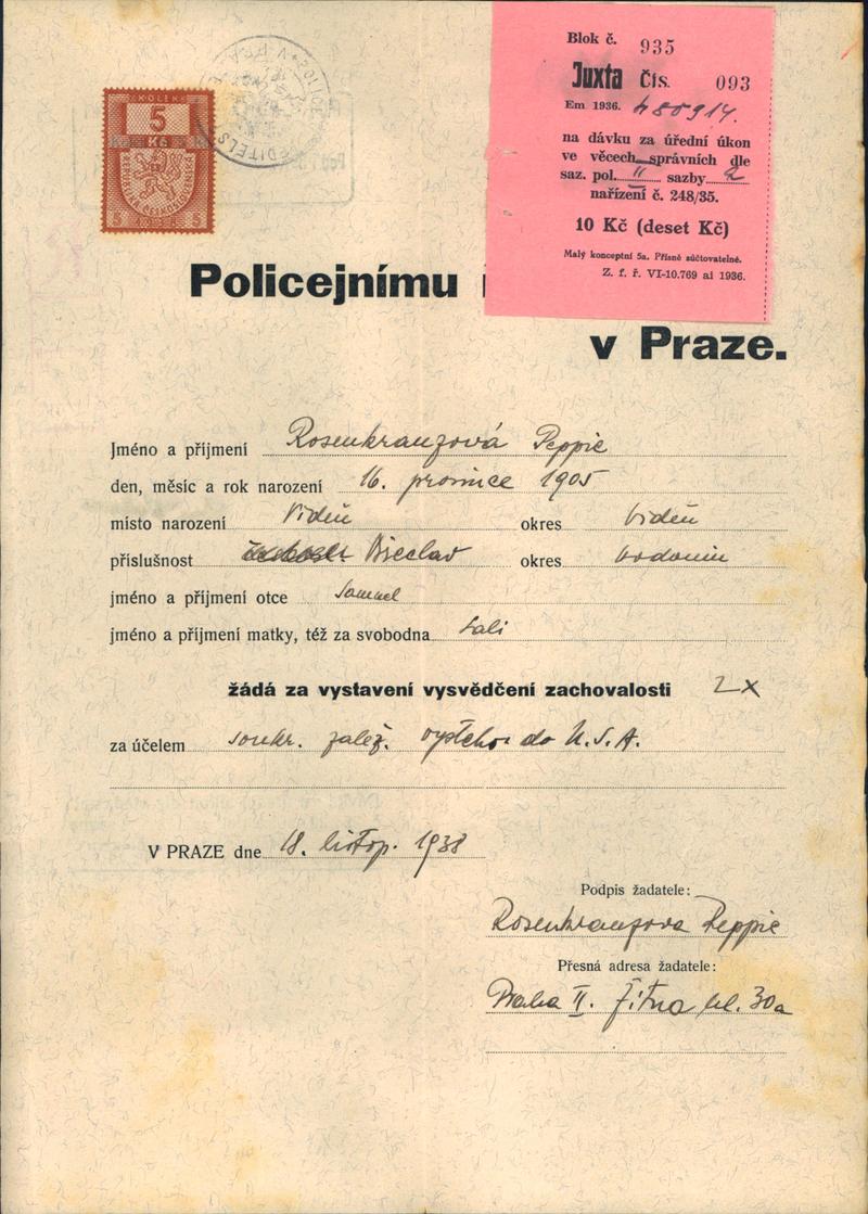 Nationalarchiv Prag > Polizei-Direktion Prag > 1931-1940 > R > Rosenkranzová Pepi Pavla