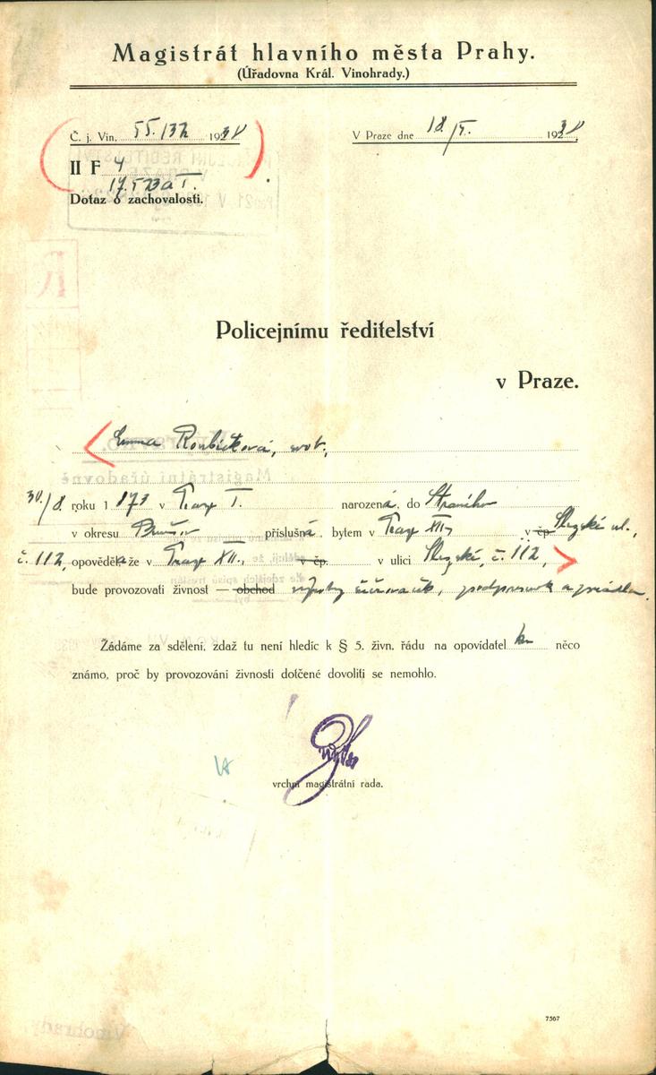 Nationalarchiv Prag > Polizei-Direktion Prag > 1931-1940 > R > Roubíčková Emma