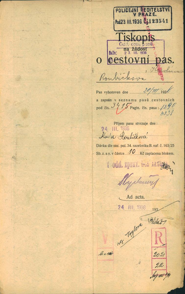 Nationalarchiv Prag > Polizei-Direktion Prag > 1931-1940 > R > Roubičková Karolina