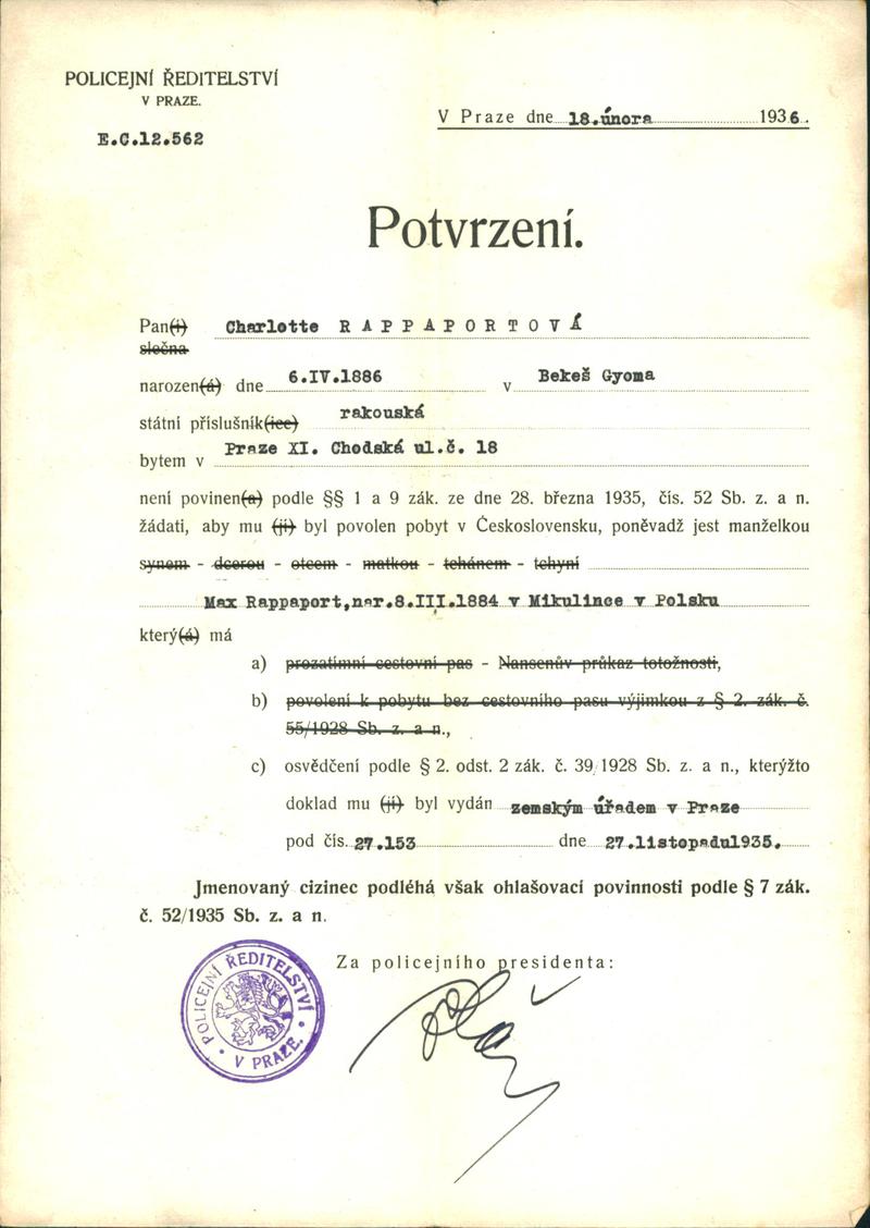 Nationalarchiv Prag > Polizei-Direktion Prag > 1931-1940 > R > Rappaportová Lotta