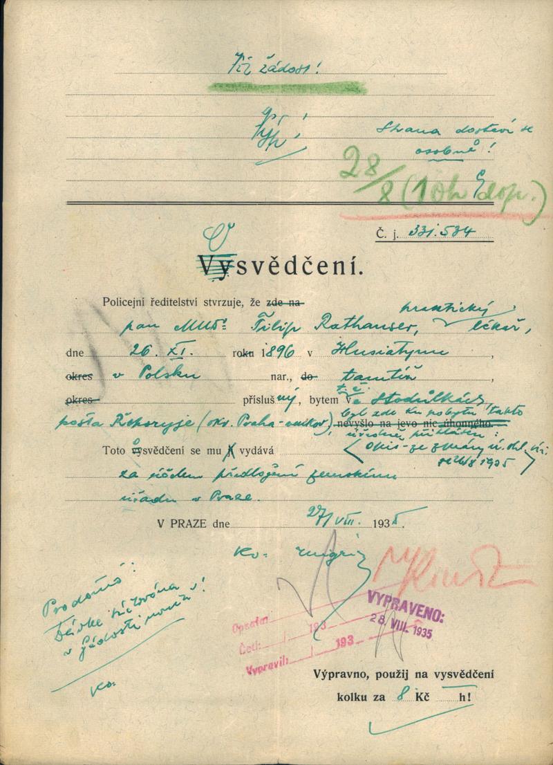 Nationalarchiv Prag > Polizei-Direktion Prag > 1931-1940 > R > Rathauser Filip