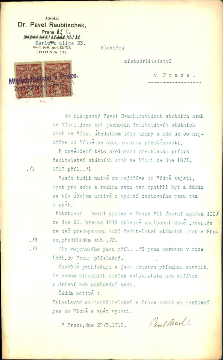 Nationalarchiv Prag > Polizei-Direktion Prag > 1931-1940 > R > Reach Pavel