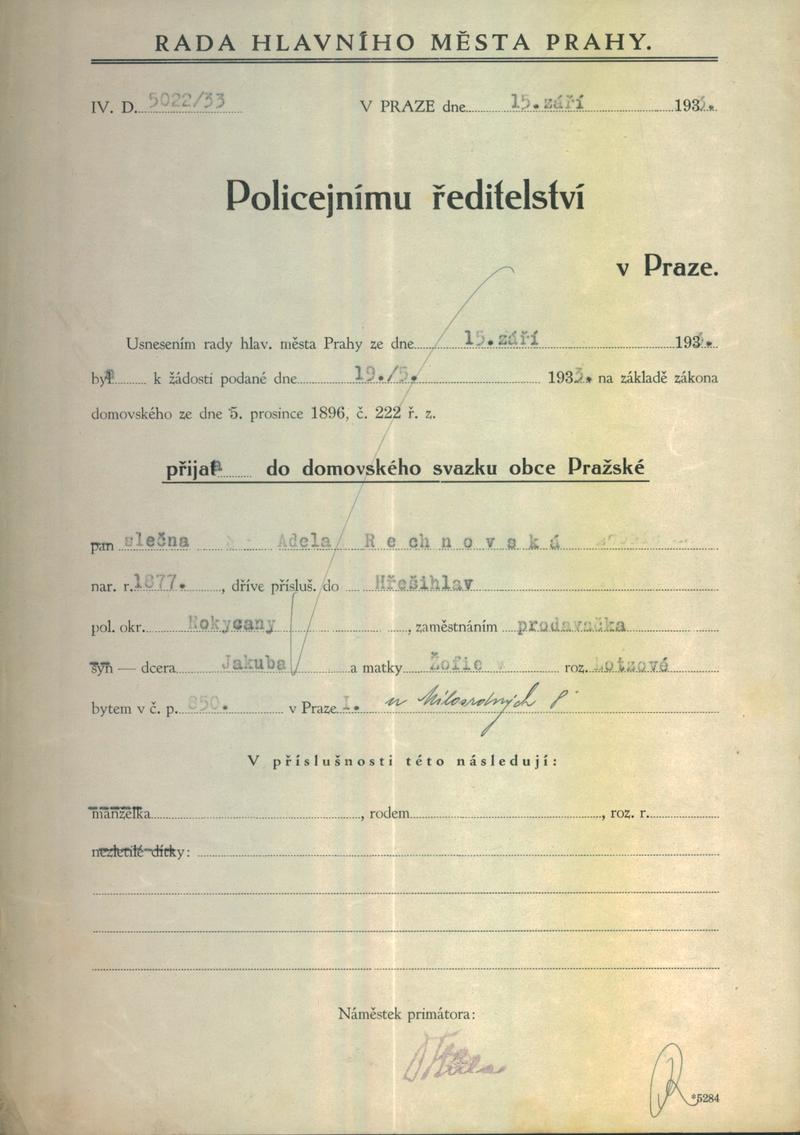 Nationalarchiv Prag > Polizei-Direktion Prag > 1931-1940 > R > Rechnovská Adéla
