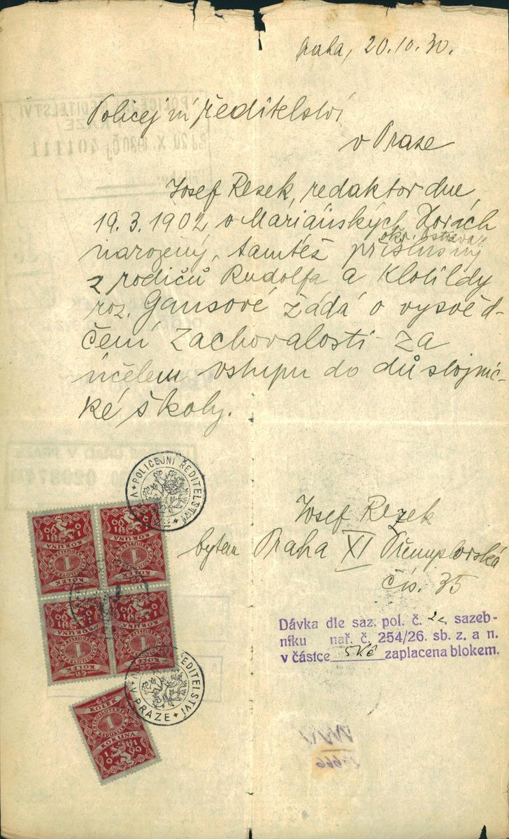 Nationalarchiv Prag > Polizei-Direktion Prag > 1931-1940 > R > Rezek Josef