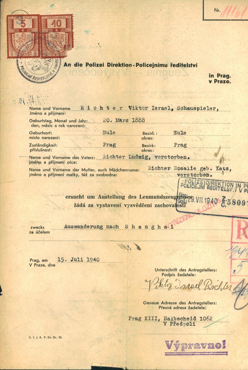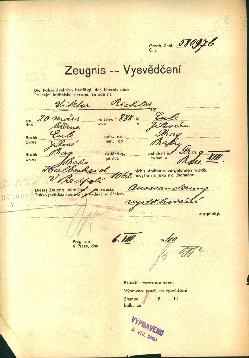 Nationalarchiv Prag > Polizei-Direktion Prag > 1941-1950 > R > Richter Viktor