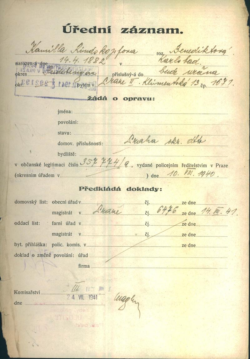 Nationalarchiv Prag > Polizei-Direktion Prag > 1941-1950 > R > Rindskopfová Kamila