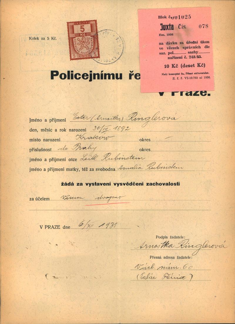 Nationalarchiv Prag > Polizei-Direktion Prag > 1941-1950 > R > Ringlerová Ester