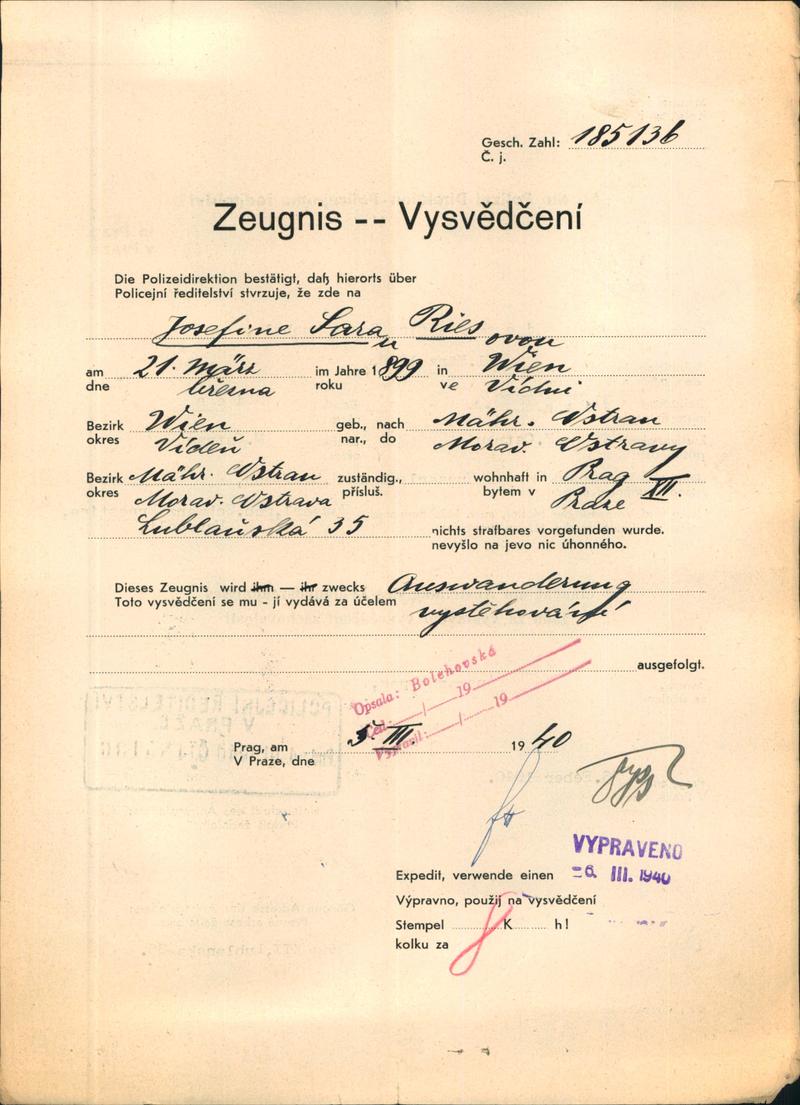 Nationalarchiv Prag > Polizei-Direktion Prag > 1941-1950 > R > Riesová Josefina