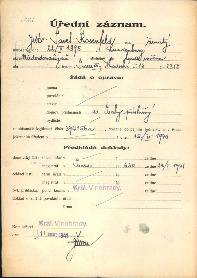 Nationalarchiv Prag > Polizei-Direktion Prag > 1941-1950 > R > Rosenfeld Pavel