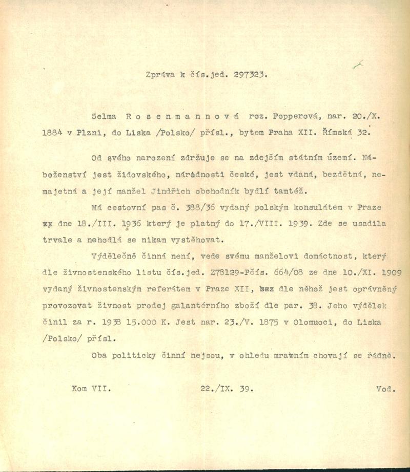 Nationalarchiv Prag > Polizei-Direktion Prag > 1941-1950 > R > Rosenmannová Selma
