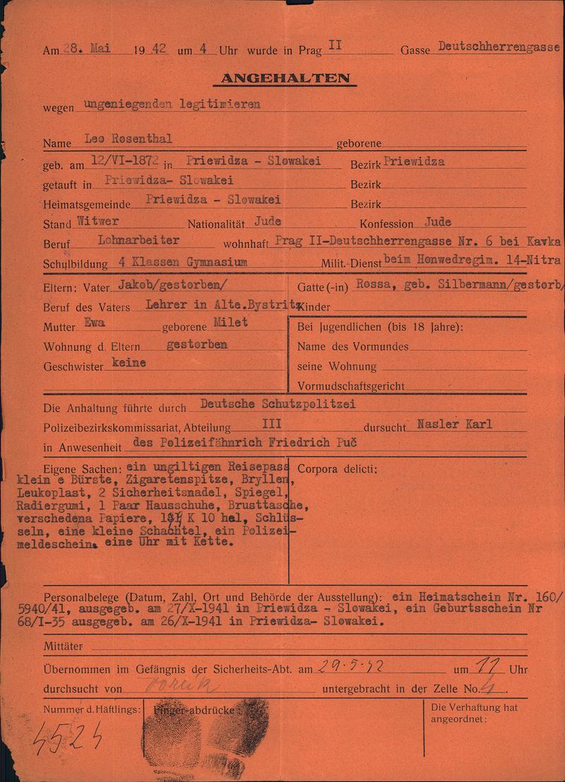 Nationalarchiv Prag > Polizei-Direktion Prag > 1941-1950 > R > Rosenthal Leo