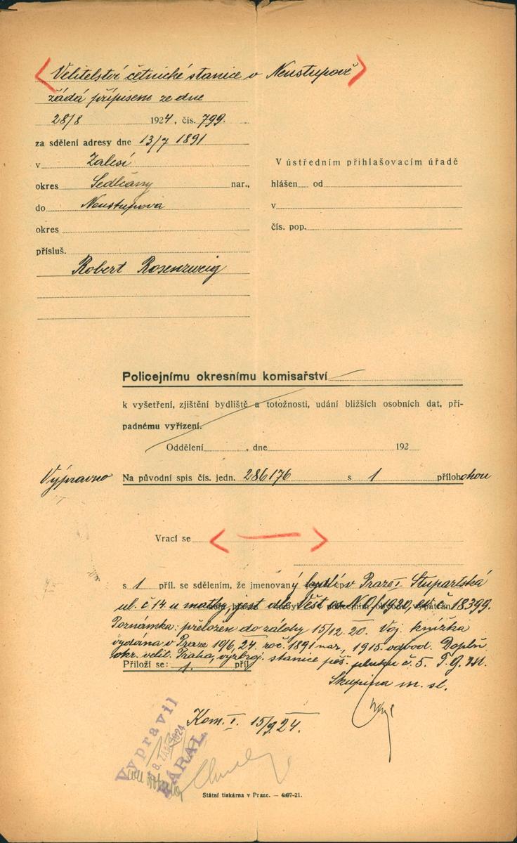 Nationalarchiv Prag > Polizei-Direktion Prag > 1941-1950 > R > Rosenzweig Robert