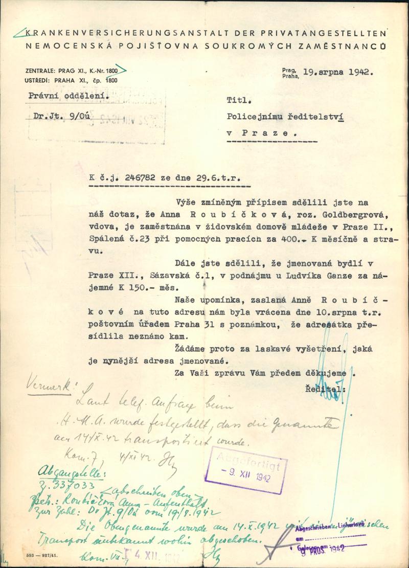 Nationalarchiv Prag > Polizei-Direktion Prag > 1941-1950 > R > Roubičková Anna
