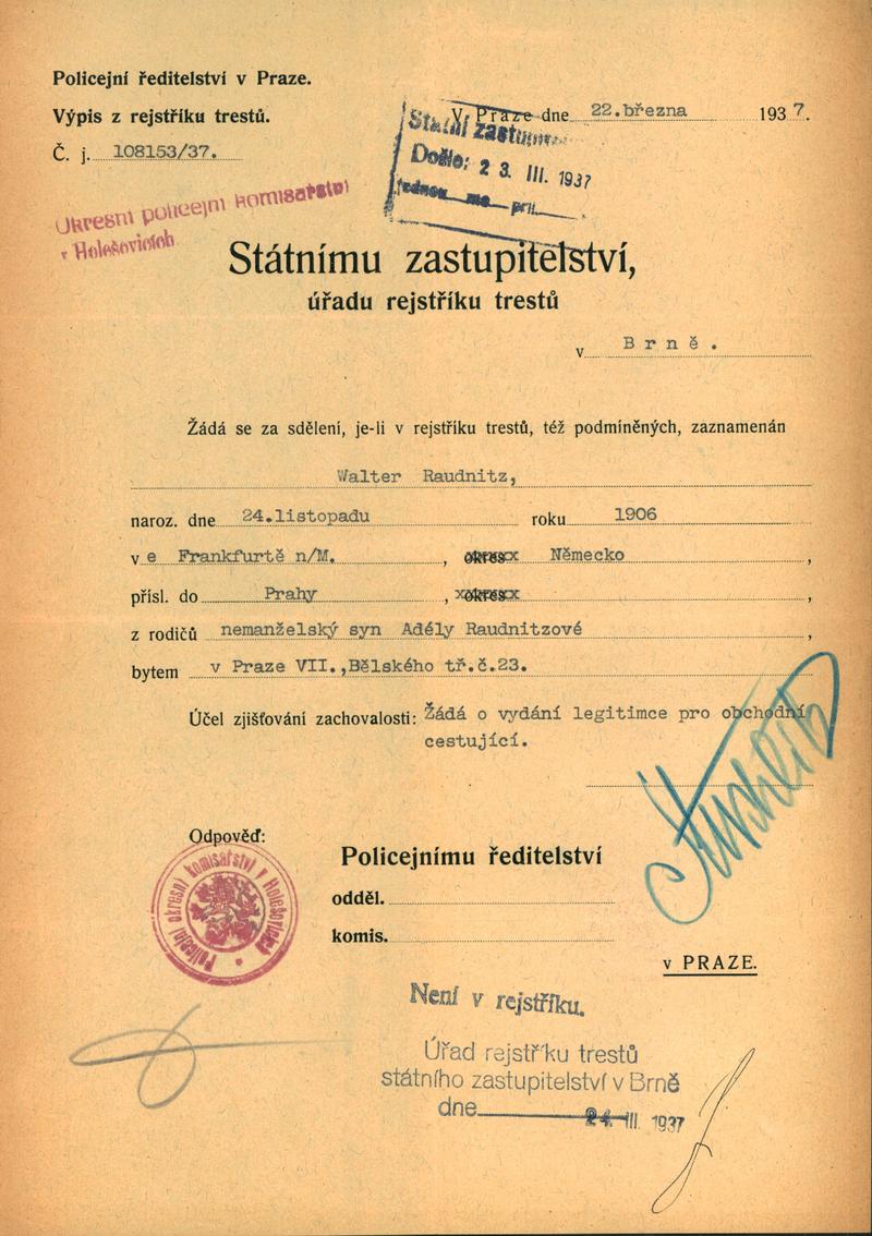Nationalarchiv Prag > Polizei-Direktion Prag > 1941-1950 > R > Raudnitz Valtr