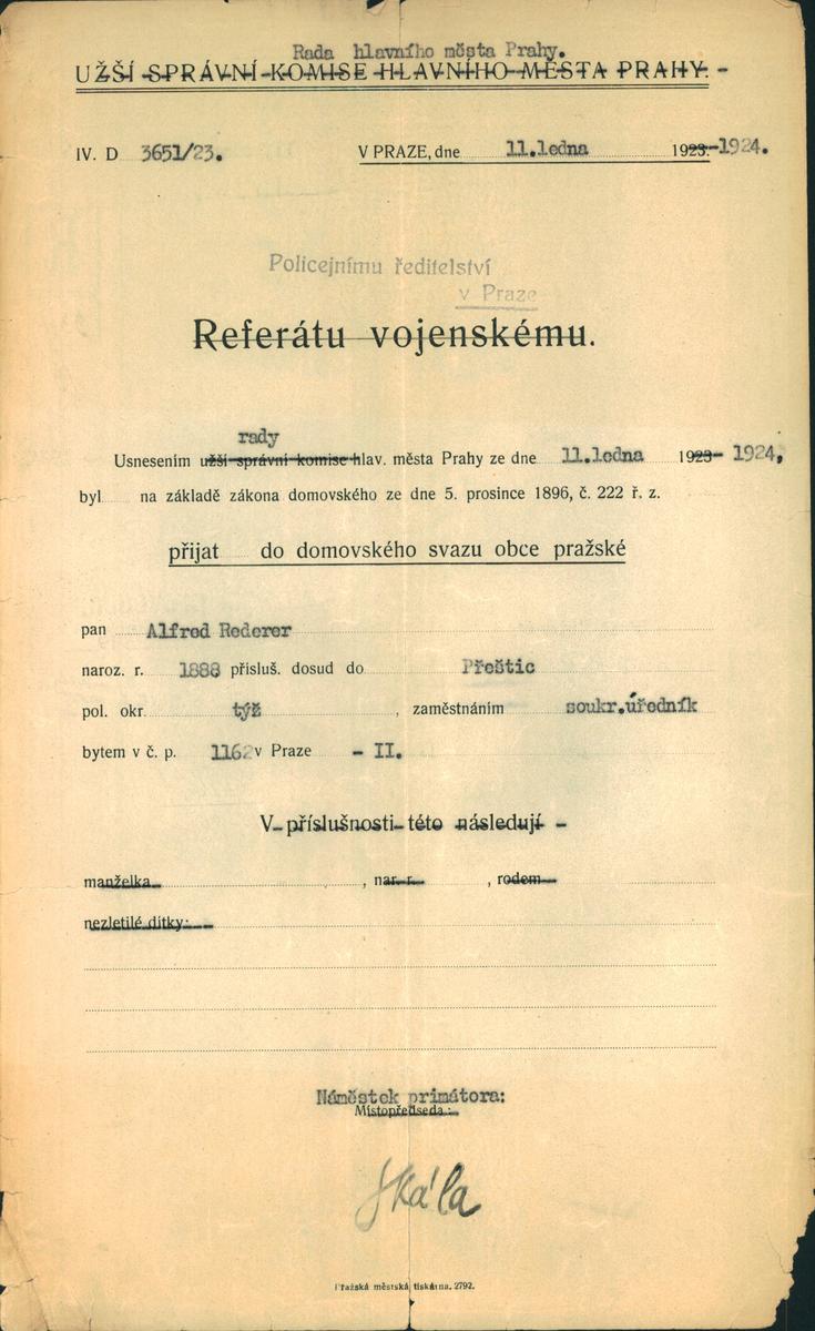 Nationalarchiv Prag > Polizei-Direktion Prag > 1941-1950 > R > Rederer Alfred
