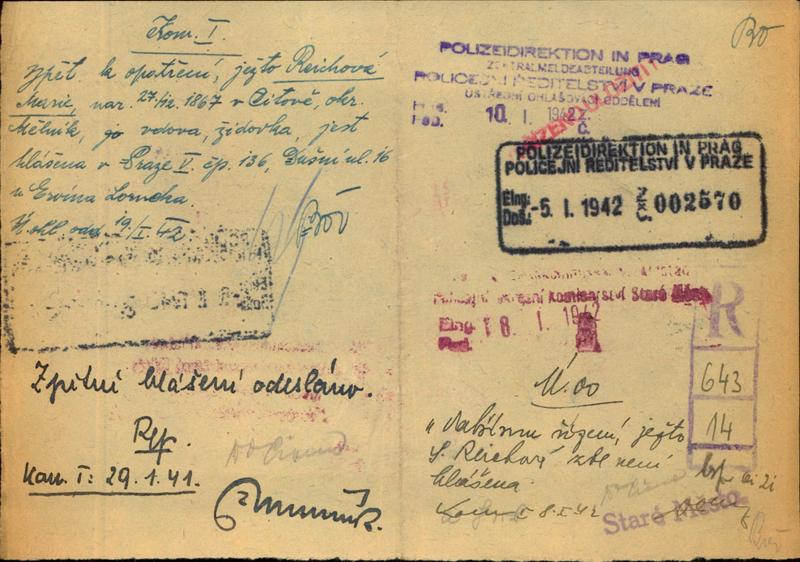 Nationalarchiv Prag > Polizei-Direktion Prag > 1941-1950 > R > Reichová Marie