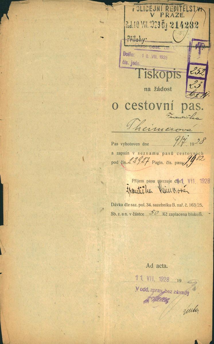 Nationalarchiv Prag > Polizei-Direktion Prag > 1941-1950 > R > Reimannová Františka
