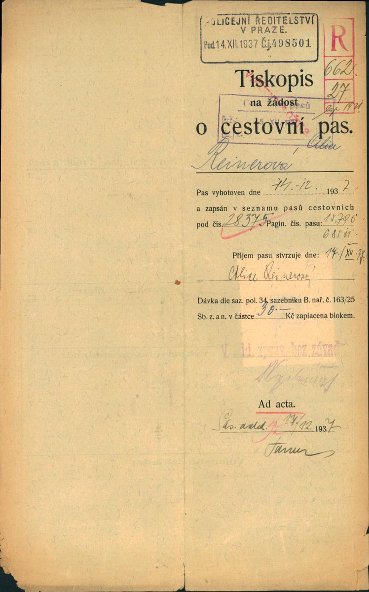 Nationalarchiv Prag > Polizei-Direktion Prag > 1941-1950 > R > Reinerová Alice
