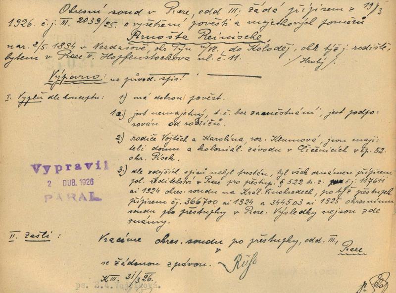 Nationalarchiv Prag > Polizei-Direktion Prag > 1941-1950 > R > Reinisch Arnošt