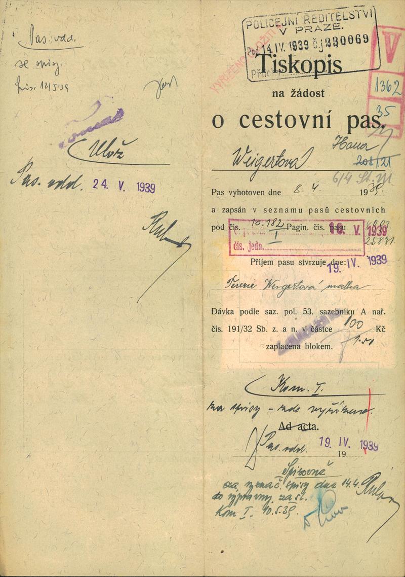 Nationalarchiv Prag > Polizei-Direktion Prag > 1931-1940 > W > Weigertová Hana