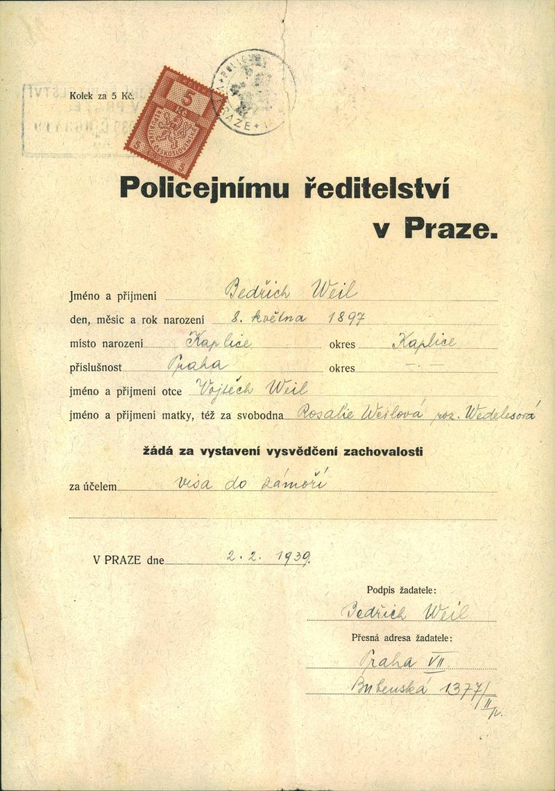 Nationalarchiv Prag > Polizei-Direktion Prag > 1931-1940 > W > Weil Bedřich