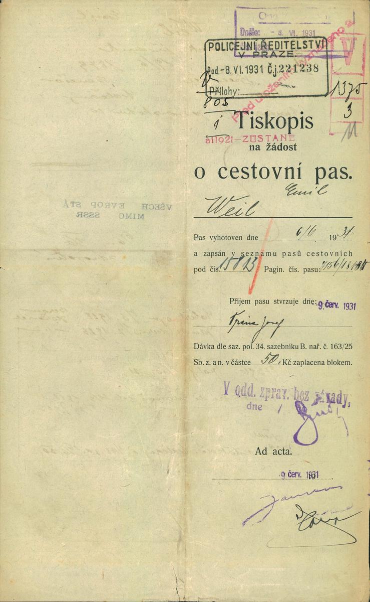 Nationalarchiv Prag > Polizei-Direktion Prag > 1931-1940 > W > Weil Emil