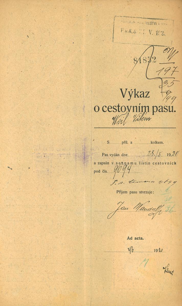 Nationalarchiv Prag > Polizei-Direktion Prag > 1931-1940 > W > Weil Vilém