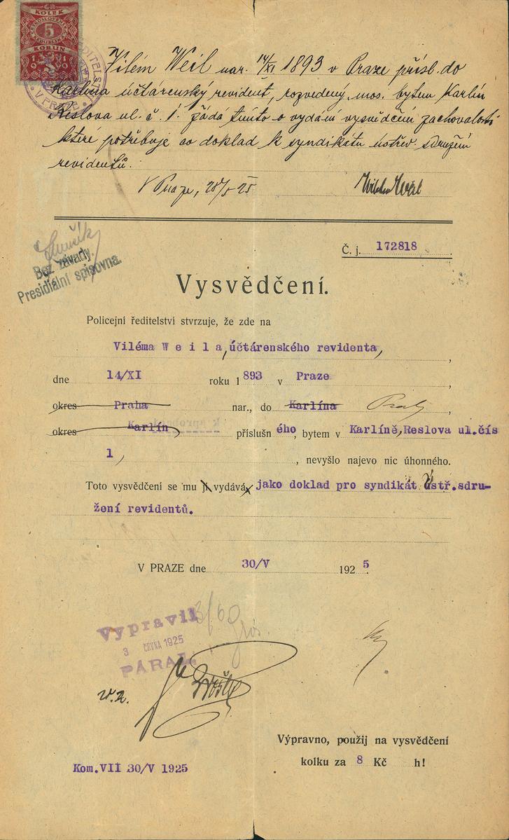 Nationalarchiv Prag > Polizei-Direktion Prag > 1931-1940 > W > Weil Vilém