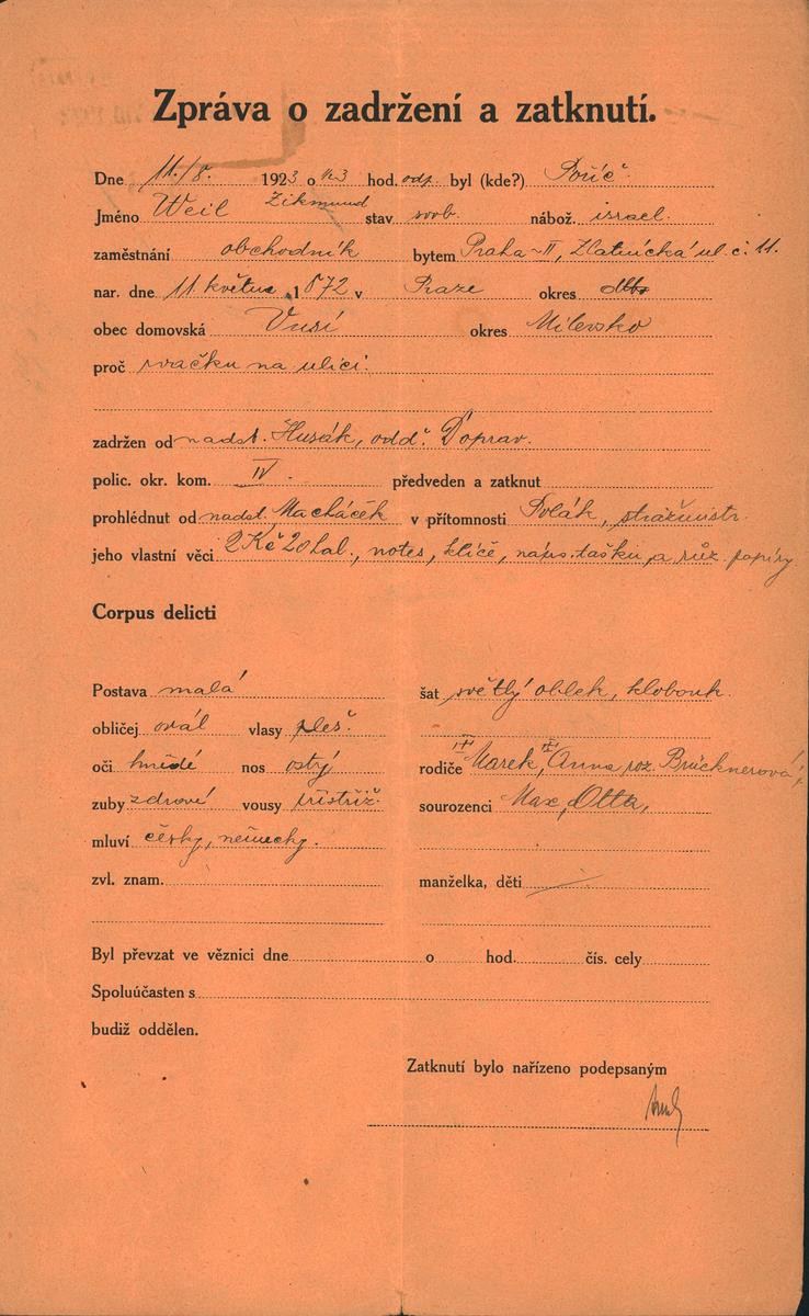 Nationalarchiv Prag > Polizei-Direktion Prag > 1931-1940 > W > Weil Zikmund
