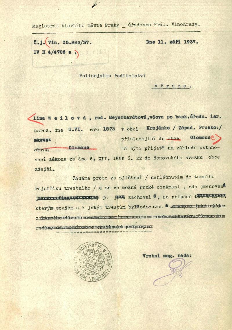 Nationalarchiv Prag > Polizei-Direktion Prag > 1931-1940 > W > Weilová Lína