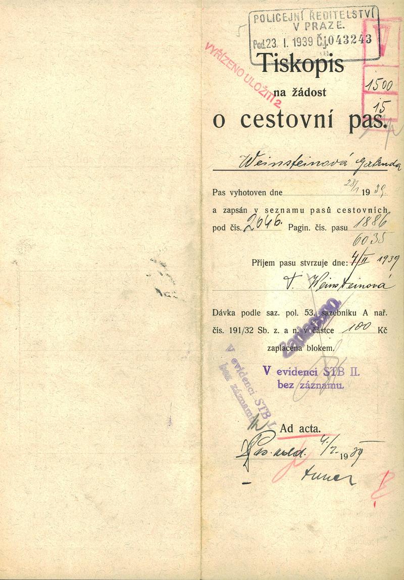 Nationalarchiv Prag > Polizei-Direktion Prag > 1931-1940 > W > Weinsteinová Truda