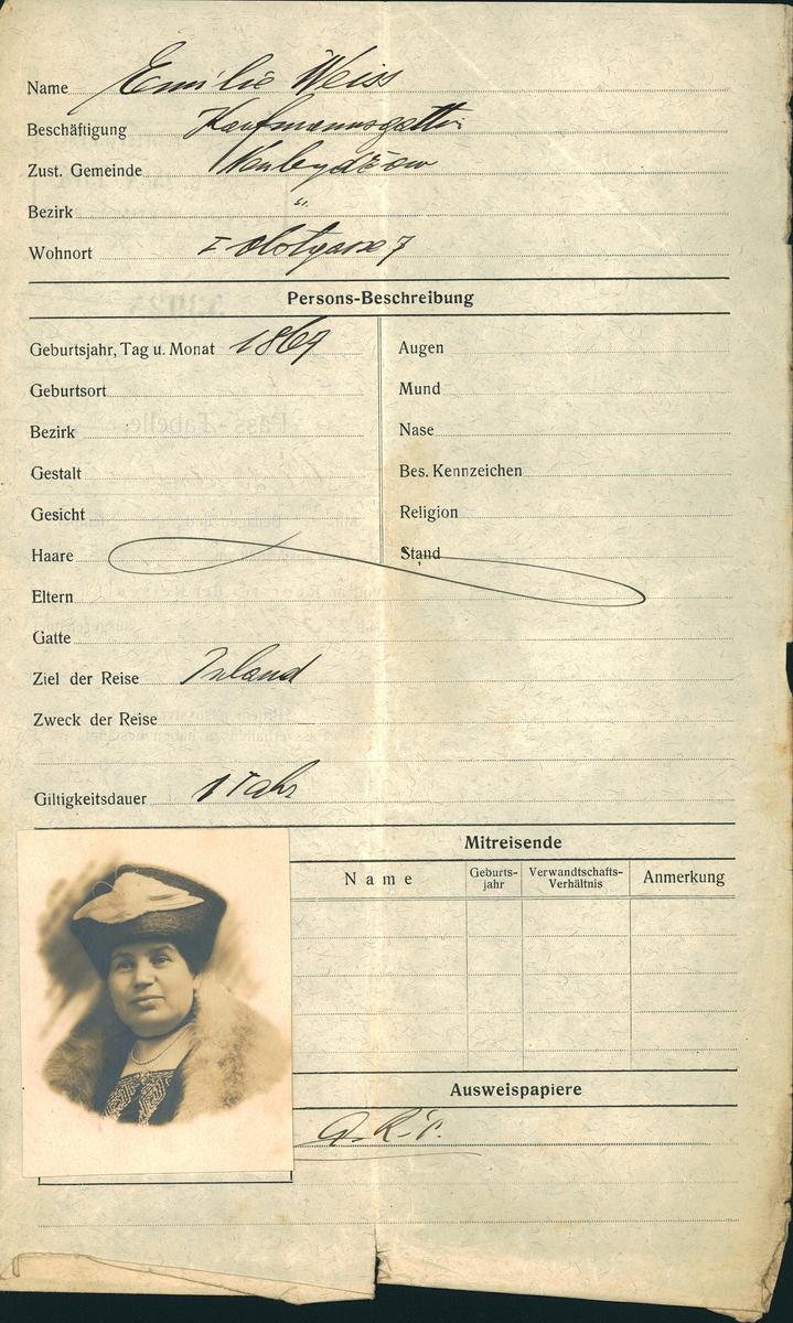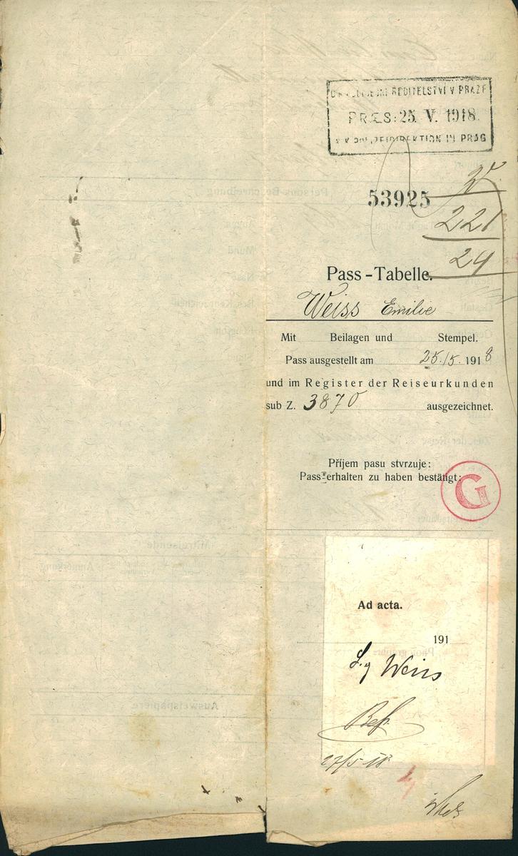 Nationalarchiv Prag > Polizei-Direktion Prag > 1931-1940 > W > Weissová Emilie
