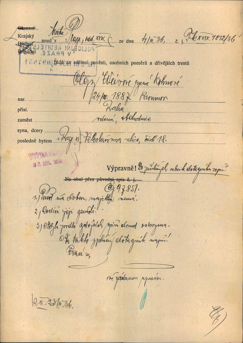 Nationalarchiv Prag > Polizei-Direktion Prag > 1931-1940 > W > Weiszová Olga