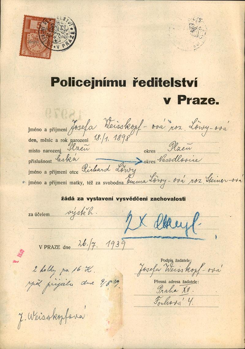 Nationalarchiv Prag > Polizei-Direktion Prag > 1931-1940 > W > Weisskopfová Josefa