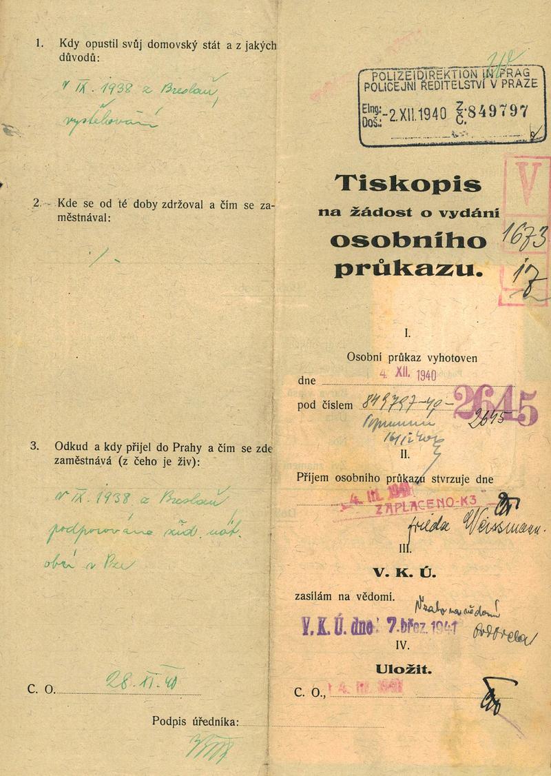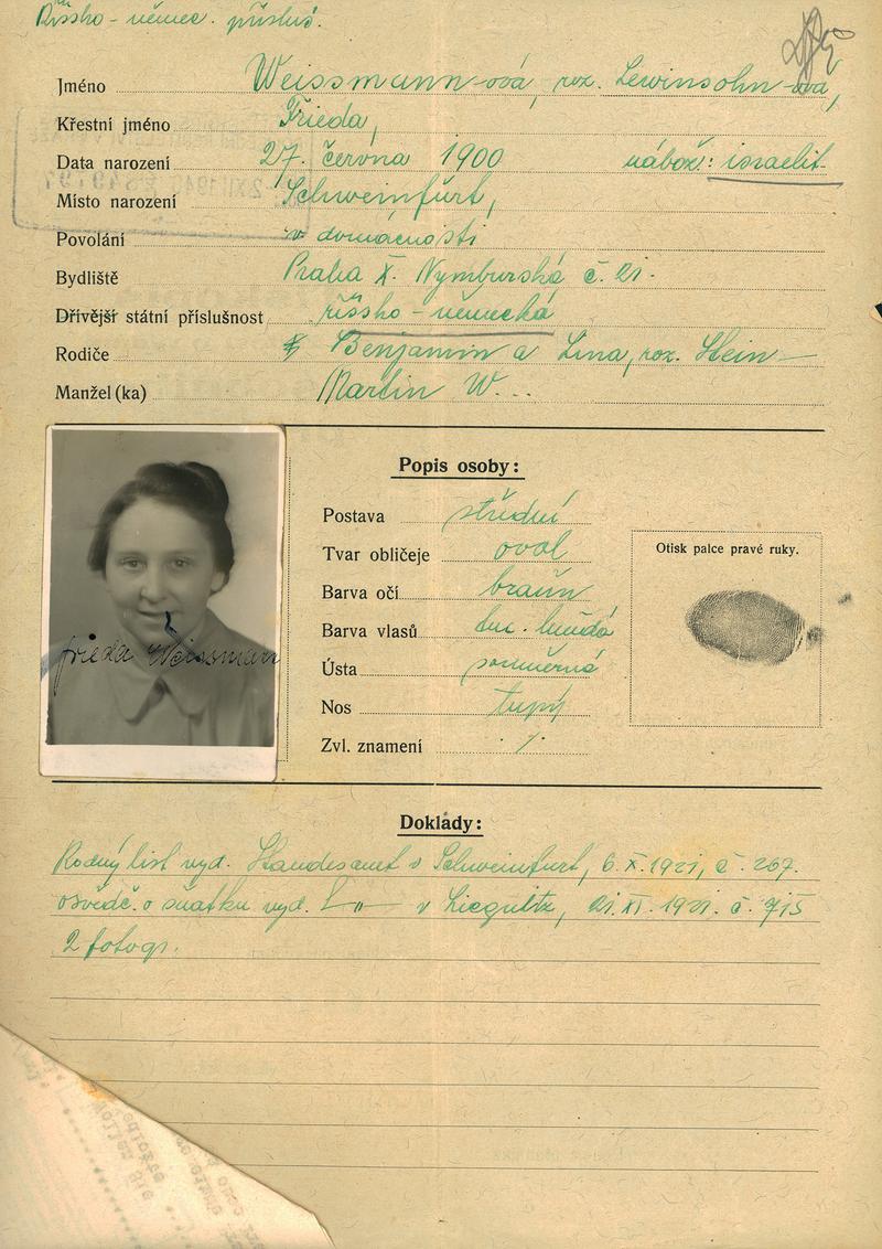 Nationalarchiv Prag > Polizei-Direktion Prag > 1931-1940 > W > Weissmannová Bedřiška
