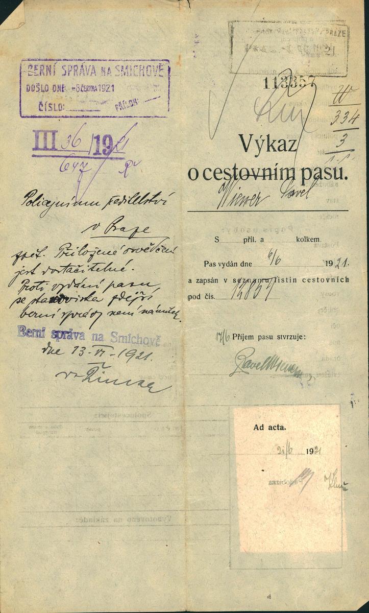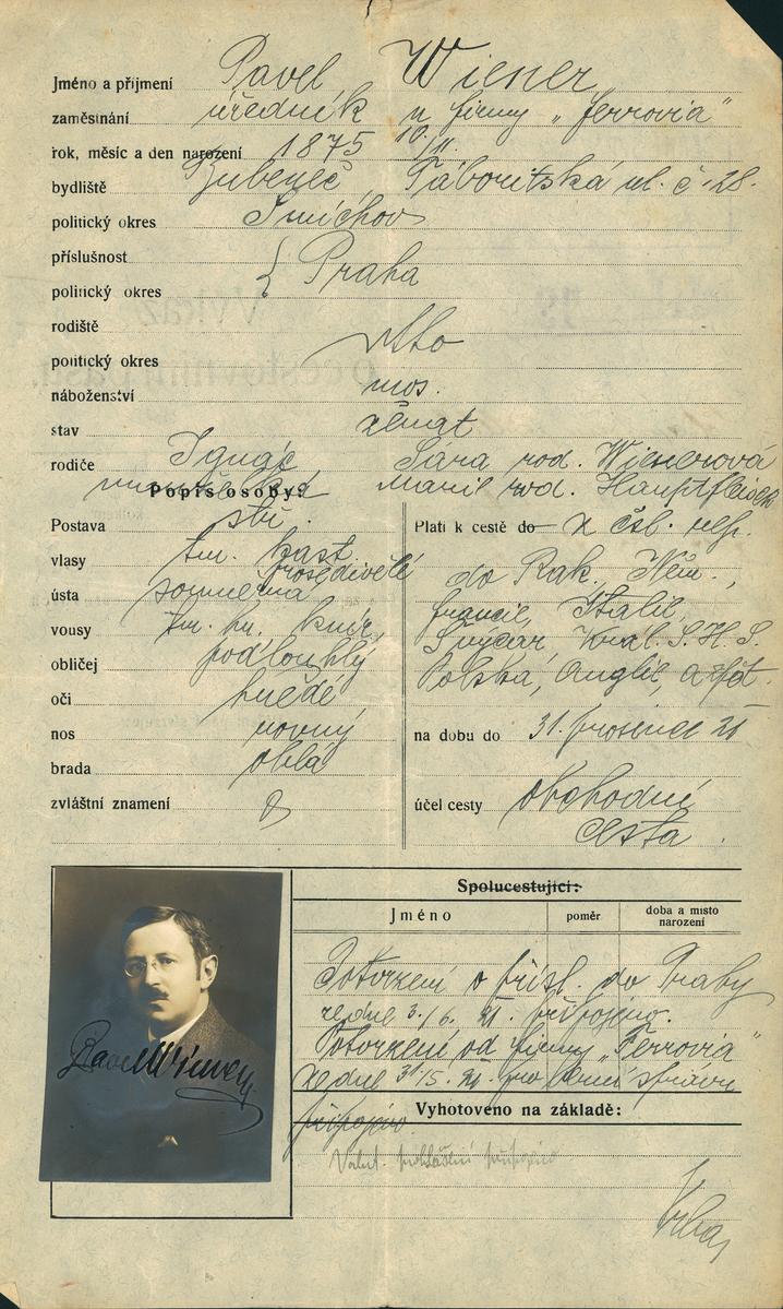 Nationalarchiv Prag > Polizei-Direktion Prag > 1931-1940 > W > Wiener Pavel
