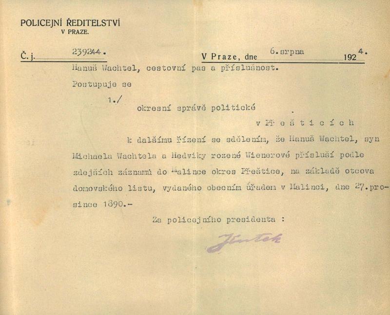 Nationalarchiv Prag > Polizei-Direktion Prag > 1931-1940 > W > Wachtel Hanuš