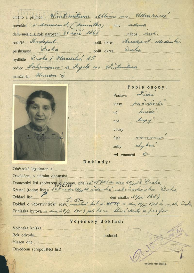Nationalarchiv Prag > Polizei-Direktion Prag > 1931-1940 > W > Winternitzová Albina